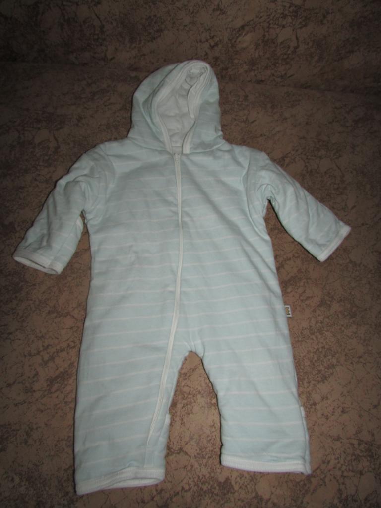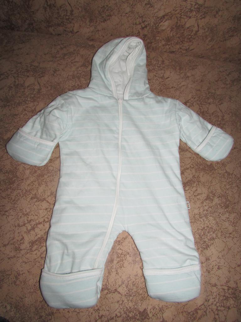 Теплый человечек-комбинезон на синтепоне с капюшоном для деток от 0 до 3-ех месяцев. Мы его на улицу одевали - ребенку тепло и уютно в нем было. Ножки и ручки можно спрятать, можно оставлять открытыми.