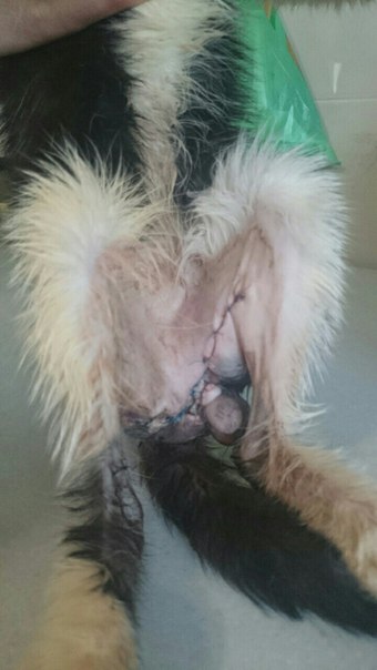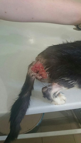 Слава Богу пузик приобрел "человеческий" вид. А вот рана над хвостом увеличилась, очевидно доктор обрезал всю мертвую ткань. Стягивать очевидно не стал? Наверное не за что было зацепиться и стягивать нечего было? Но радует то, что рана красная, живая, значит будет затягиваться.
