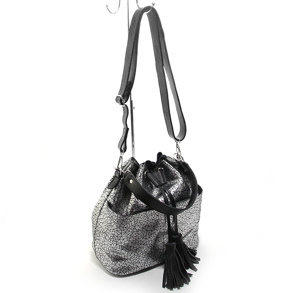 Одно основное отделения под затяжкой. Потайной карман на змейке. Накладной кармашек для аксессуаров. На фасадной стороне сумки, снаружи, два накладных кармана.
