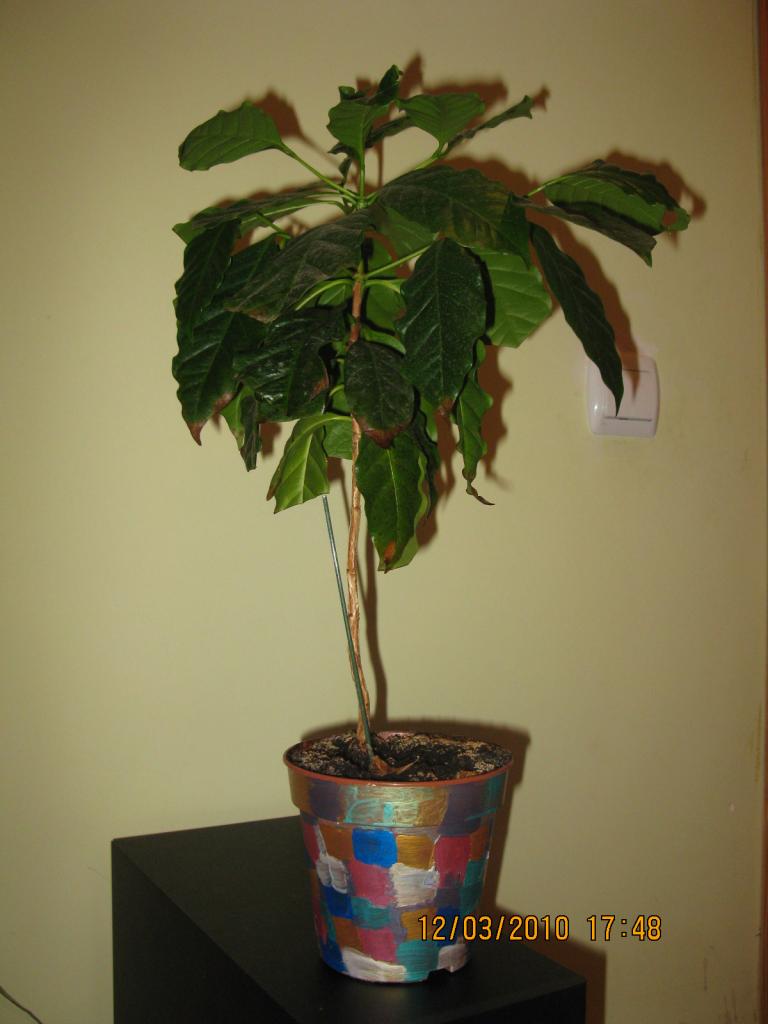 Я свой тоже садила в землю для лимонов (не знала тогда, что надо кислую), но стала удобрять подкормкой для азалий и все наладилось! Теперь уже пересажу как положено. А какой возраст у Вашего кофе?