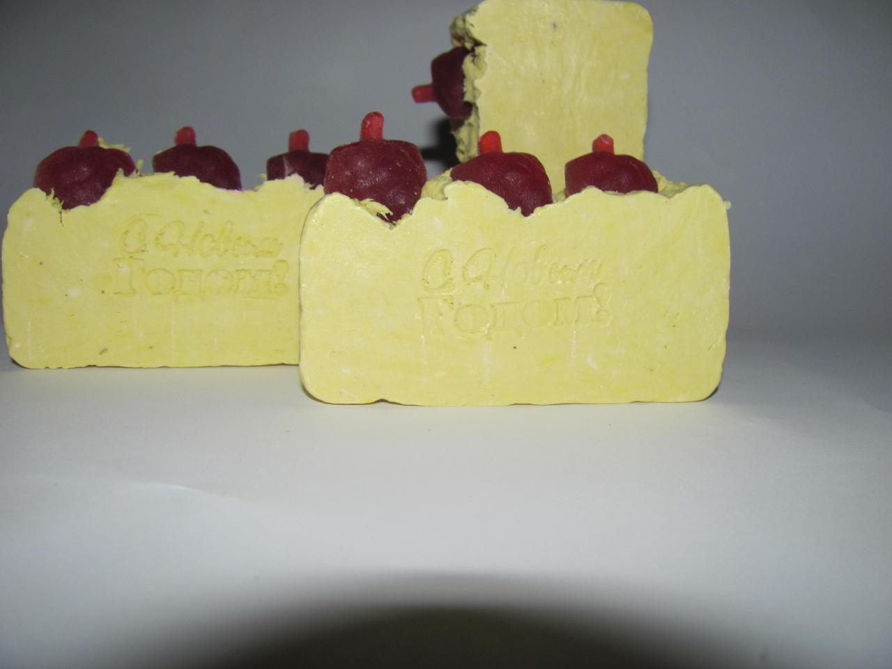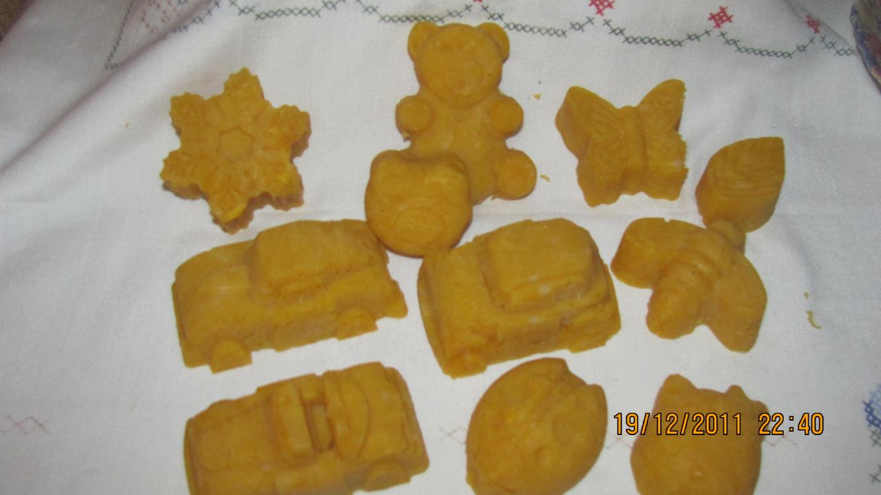 Мыло с запахом сирени ( более светлое) и медовой дыни(желтоватое)![]()
