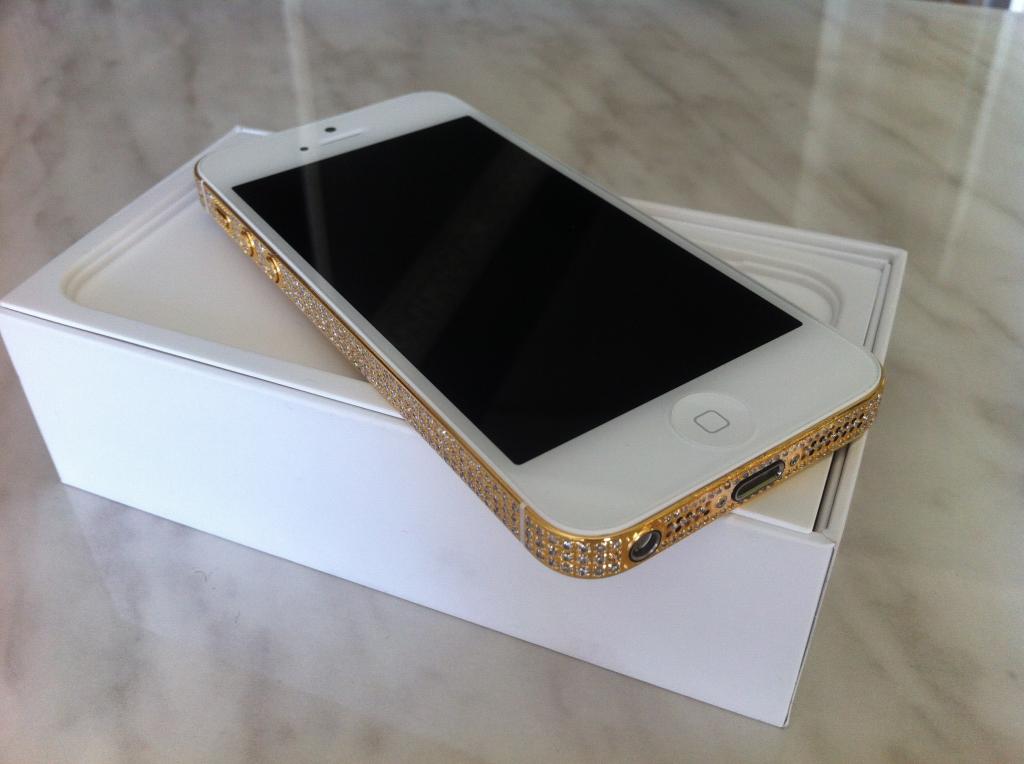 Тюнинг iPhone 5 (окантовачный профиль из нержавейки заменён на золотой,