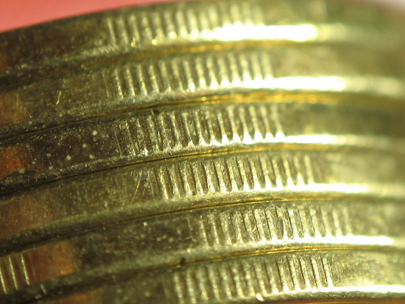 Сделайте пожалуйста новый скан: вверху монету с вдавленной насечкой, под ней с выпуклой и внизу с вдавленной. Мне так будет легче увидеть.