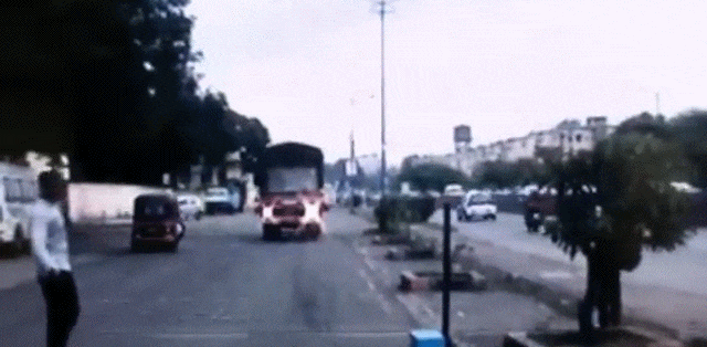 Перед постом ГАИ останавливается пожарная машина. Водитель выходит из машины, подходит к ГАИшнику и протягивает документы. Тот с недоумённым выражением на лице берёт, смотрит и протягивает обратно.