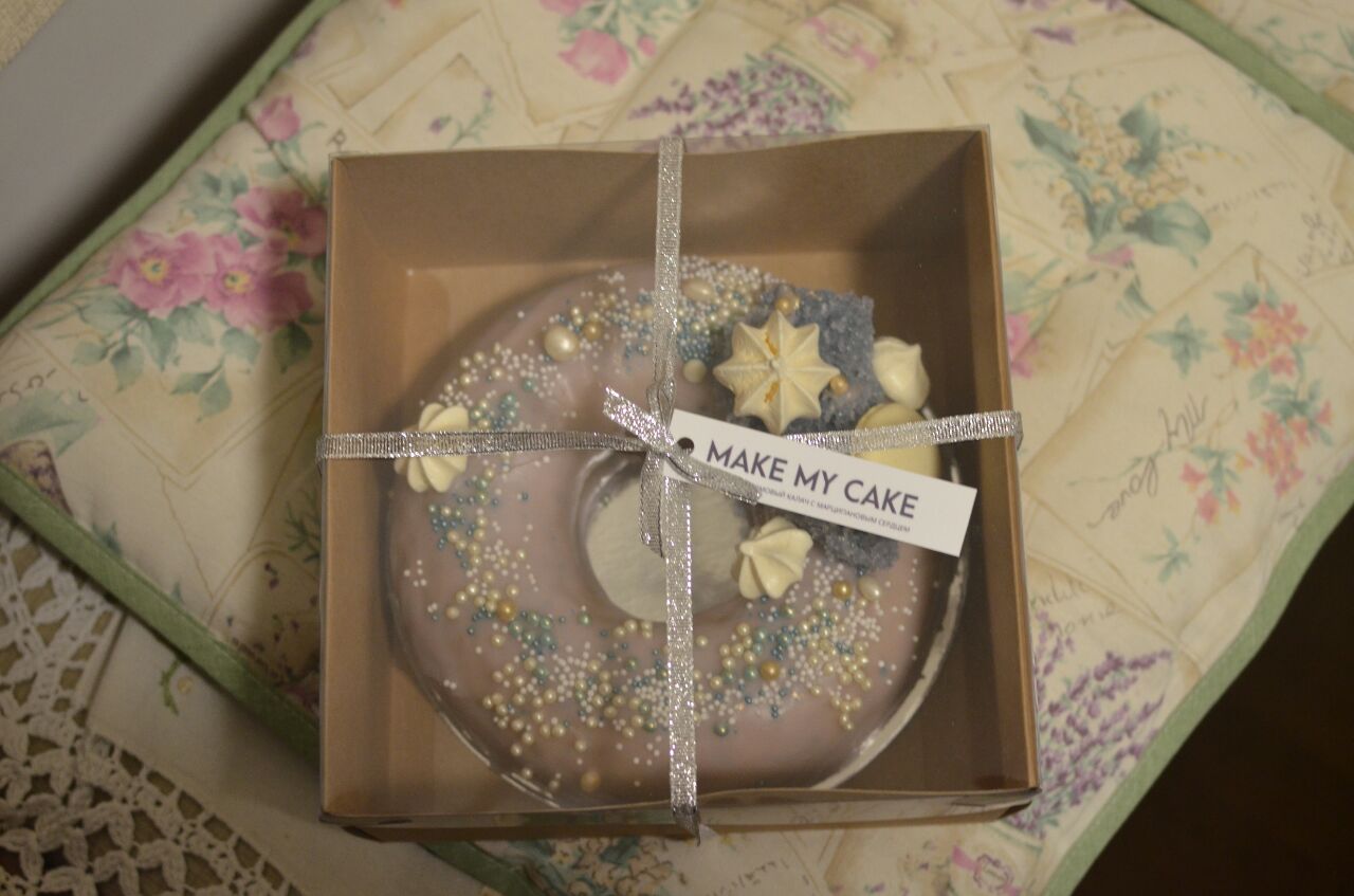 В make my cake оказался вкусный калач, правда он ничего общего с этим названием не имеет. Внутри марципан, миндальные орехи, ромовая пропитка. Цена 490 гривен