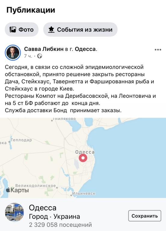 Купер написал в фб, что сегодня с 18.00 его рестораны уходят на карантин