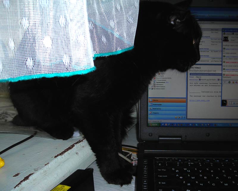 Значицца, вид сбоку, вид сверху, вид спереди))) И так вот Клипа сидит, а потом у нее как будто три уха)))) А заключительная - это Умка так просится на нотике посидеть, а я не пускаю... Вчера смотрела фильм, потом отвлеклась посуду вымыть, так он мне три раза мой фильм включал)))