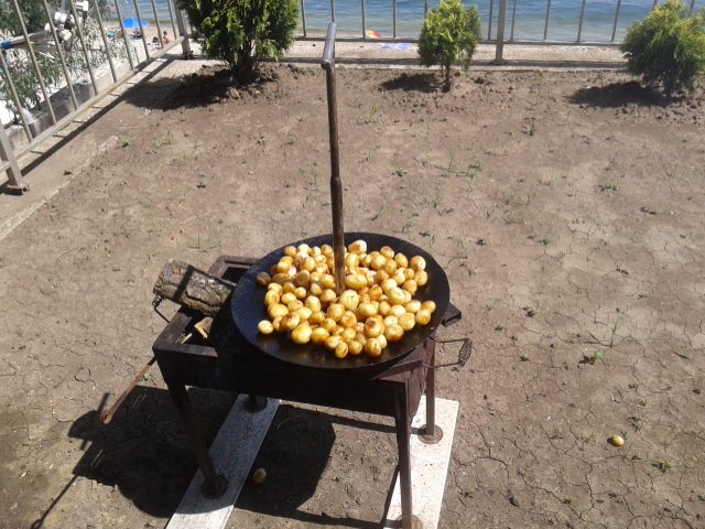 картофель с укропом, килька(уже наелась теперь нужно будет разок поиграться с биточками и возможно даже ухой), салат, мальчикам отбивнушки говяжьи, кабачки пластинками из духовки, смазанные майонезом с чесноком, также вкусно как жаренные ну типа полезнее чуток))))