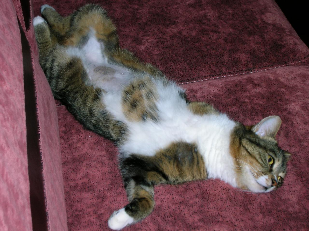 Несмотря на все старания врачей Нем. приюта, лапку этому чудесному ласковому котику пришлось ампутировать... Культя уже зажила, выбритая шерсть зарастает, котик учится жить с тремя лапками...