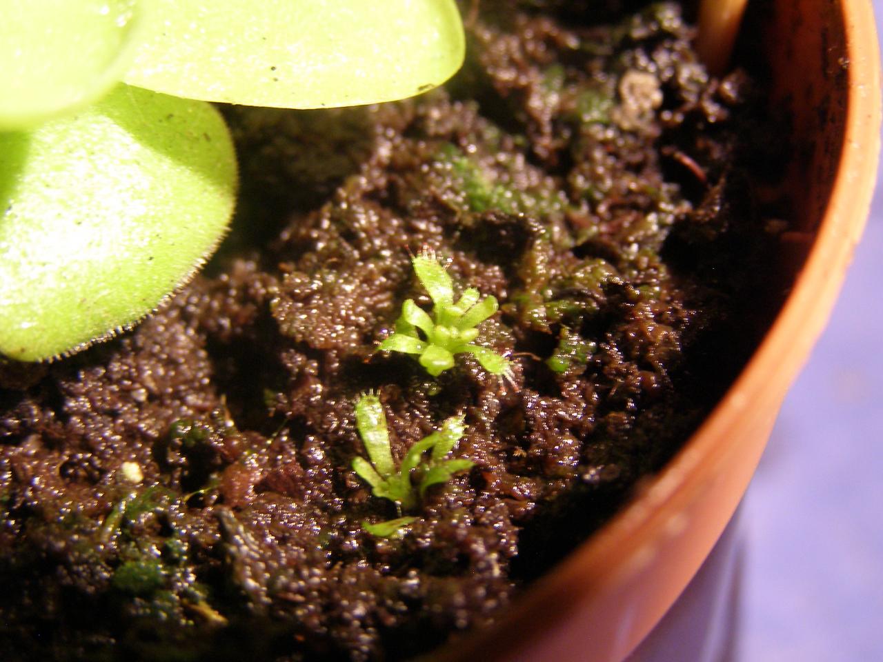 Росянка у Вас - Drosera aliciae. В зимовке не нуждается. Света ей несколько маловато, ее окрас должен быть более интенсивный. Так что с Pinguicula они не товарищи.