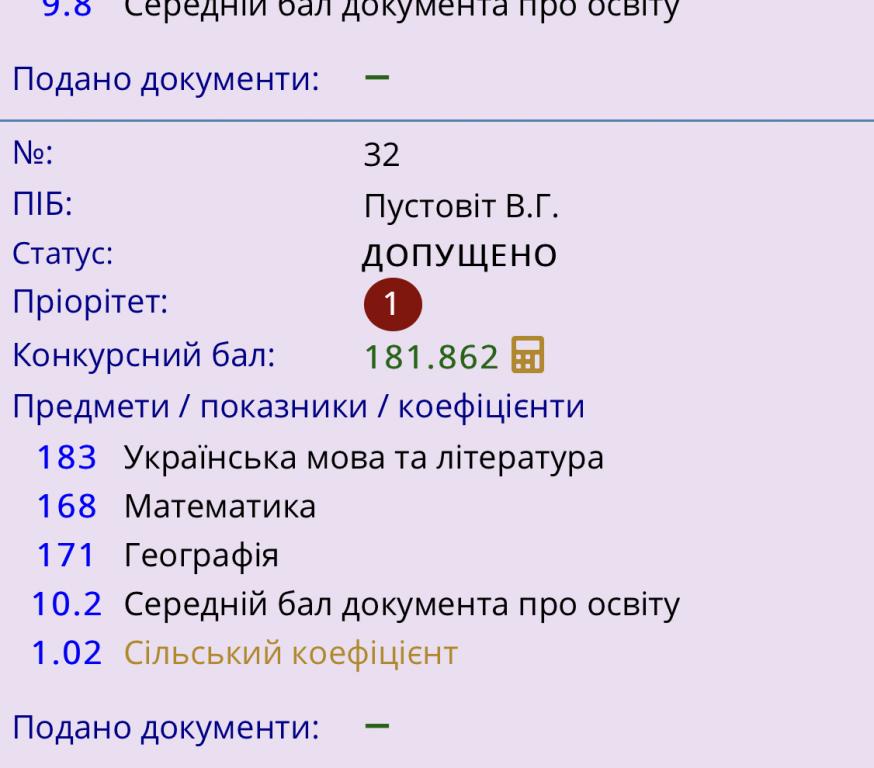 Что-то в консерватории нужно поправить... Получилось, что на бюджете будут учится с конкурсным баллом в 157, тогда как из-за порога в 150 балл многие с конкурсным баллом 170/180 не прошли. Ну и вышло, что с баллами зно 138-158-151 учится будет на бюджете, а с баллами 192-194-149 даже в конкурсе не смогли участвовать ...