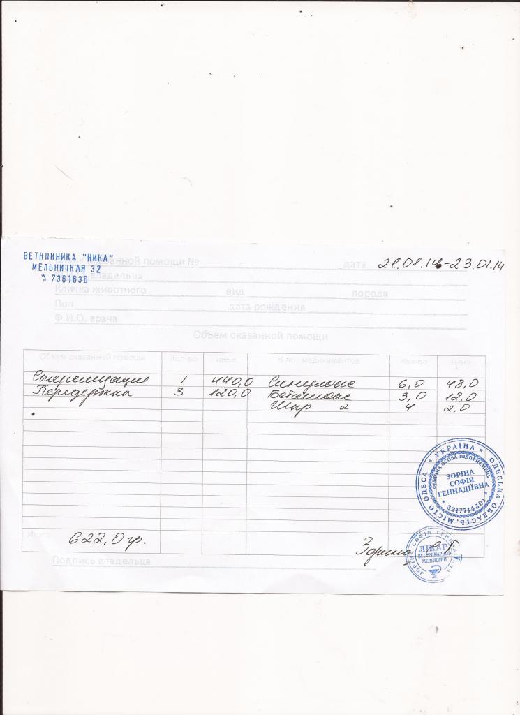 Клиника -чек-622,00