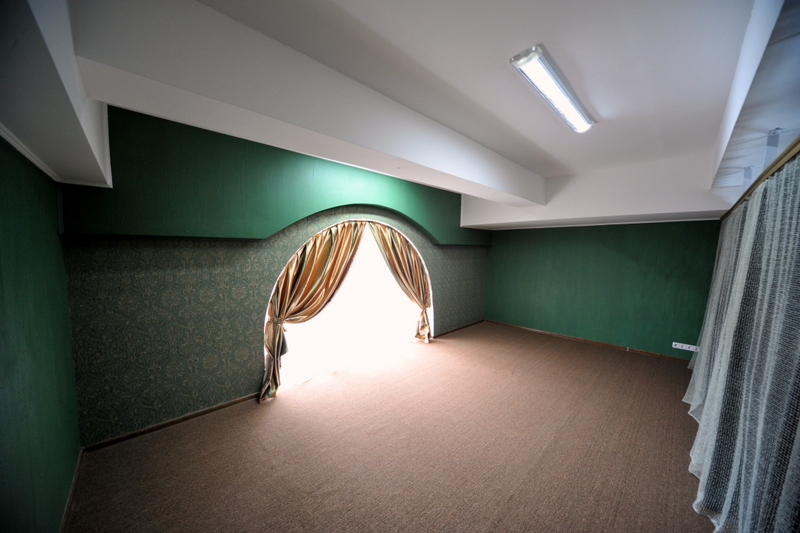 На втором уровне фотостудии размещен еще один зал, включающий бильярд, и предназначенный для предметно-интерьерных фотосессий. Большое арочное окно обеспечивает естественное освещение. Отсюда можно вести фотосъемку с верхнего ракурса.