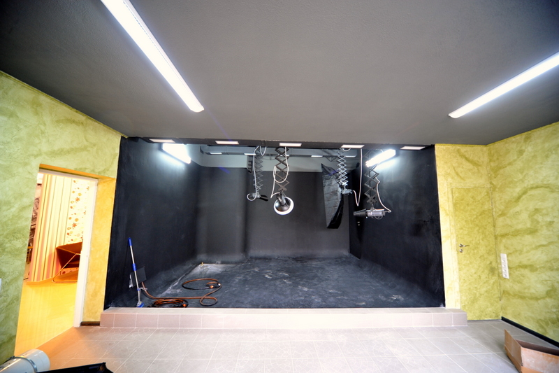Рабочее пространство фотостудии включает ряд залов, основным из которых является зал для аквасьемки 6,0 х 7,0 метров, оснащенный светотехникой фирмы HYUNDAE PHOTONICS (Корея), теплыми полами и совершенной вентиляцией. Размеры участка аквасьемки составляют 5,0 х 3,5 метра, глубина 15 см, высота потолков - 5,8 метра. Стены черного цвета, виниловые фона. Зал оборудован кран-балкой, батутом, дым-машиной, техническими возможностями установления декораций. В зал обеспечен обильный доступ солнечного света.