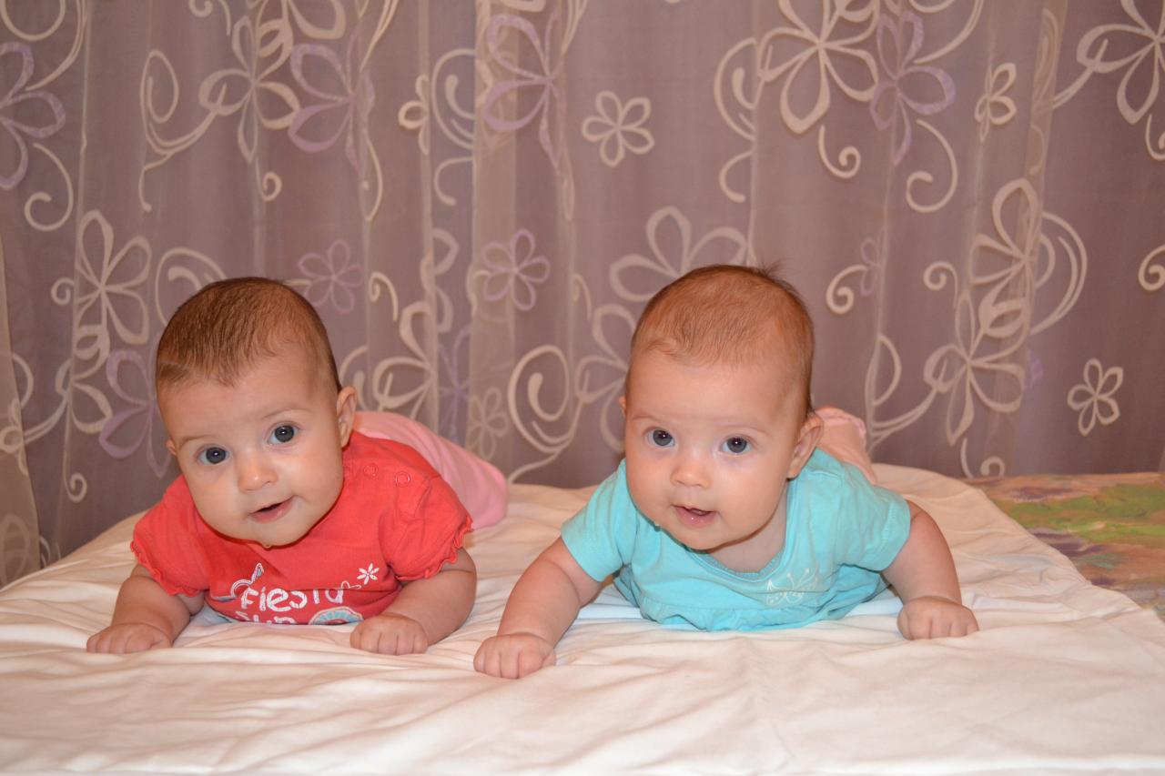 да, родились обе темненькие, потом одна стала светлеть, кожа почистилась и тоже светлой стала - это Лиза (в бирюзовом). а в красном - Сашка, наша смугляночка)