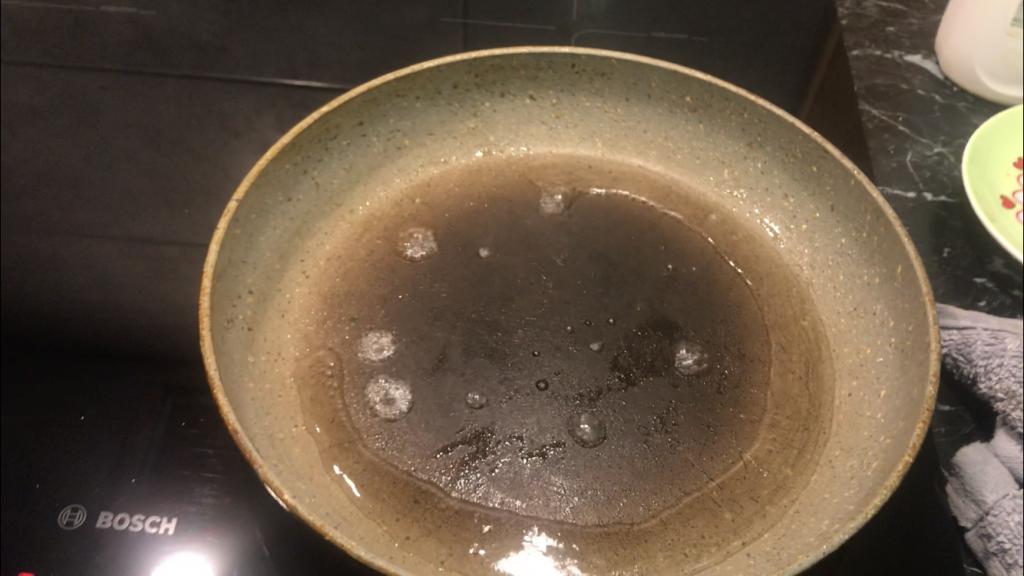 Основная проблема, которая есть на моей панели Bosch PIE631FB1 - например - просто размер индуктора. У меня есть пара больших сковородок с диаметром 28-30 и более см. И вопрос в том, что когда жарю тот же омлет, котлеты или ту же паэлью - явно видно то, что та площадь, которая соприкасается с индуктором, прогревается намного больше и быстрее. А края "провисают". Пару дней назад видео снимал для клиентки - на скринах видно, что в месте прогрева даже дно чуть приподнялось и жидкость стекла по краям, а на втором скрине видно, что по центру эта же жидкость прямо кипит, тогда как с краев этого нет. Так как индукция греет ровно то, с чем соприкасается - есть такой нюанс. Этого не ощутищь при обычной варке или тушении, а вот при жарке на больших сковородках этот минус есть. Обїединение увеличило бы зону нагрева. Либо брать в таком случае плиту с большой площадью основной конфорки.