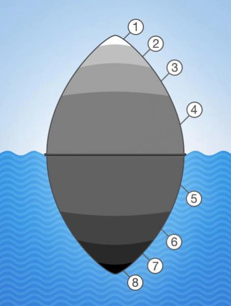 «Поплавок» - это человечество. Видите: оно делится на категории разного размера, от первой до восьмой. Первая – белая, потом белизна постепенно убывает, и восьмая категория беспросветно черная (которая находится в самом низу - глубже всего в воде).