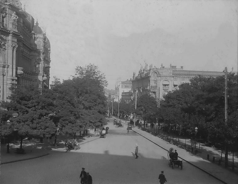 Конечная остановка 16 трамвая, от развилки с 17 маршрутом (сейчас на этом участке ходит пятый) линия была однопутной. Линия открыта в 1911 году, закрыта в 1934 г. или, по другому источнику, в 1939-1941 гг. Сам остановочный павильон — наверное, Минкус (и/или Ландесман). Может, у кого-то под рукой есть Пилявский, чтобы уточнить?