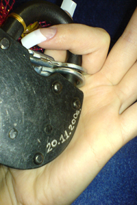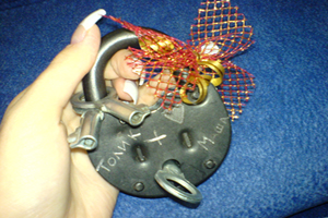 мы закрыли на ключ этот замочек и выбросили его потом в воду, второй я оставила себе а третий подарила ему...