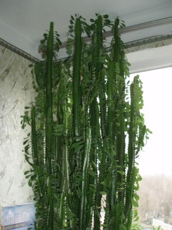 Молочай треугольный Euphorbia trigona - кустистое растение с мясистыми стеблями. Ярко выраженные ребра с мелкими колючками и продолговатыми листьями на верхушках побегов. Корневая система молочая треугольного небольшая, а растение очень высокорослое, поэтому для устойчивости требуется или глубокий горшок с высоким слоем дренажа, или подвязка к опоре.