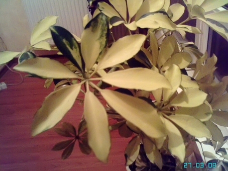 c белыми листьями шефлера 100процентов,а ниже бальзамин.