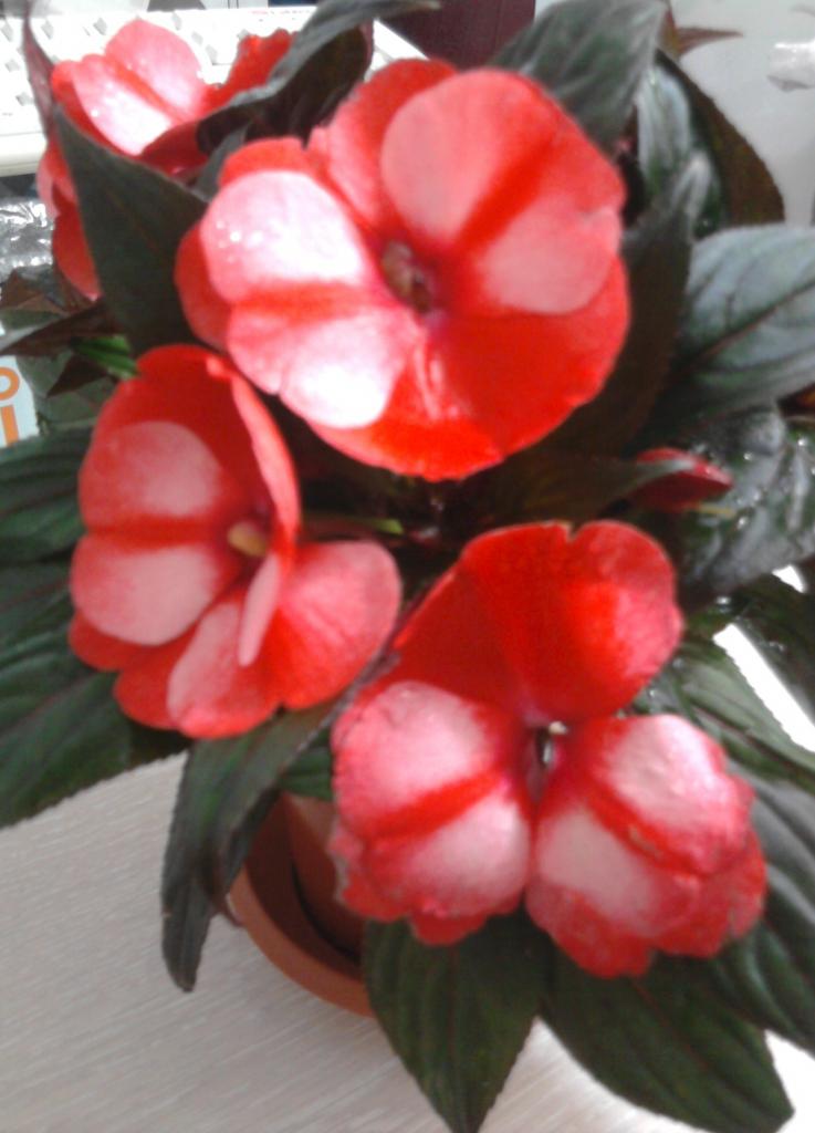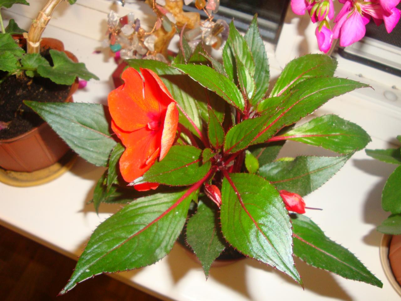 Мои балконные бальзамины в начале июня. Цветут на моем темном балконе. На фотографии видно сколько там солнца - и это тот период дня, когда солнца больше всего!