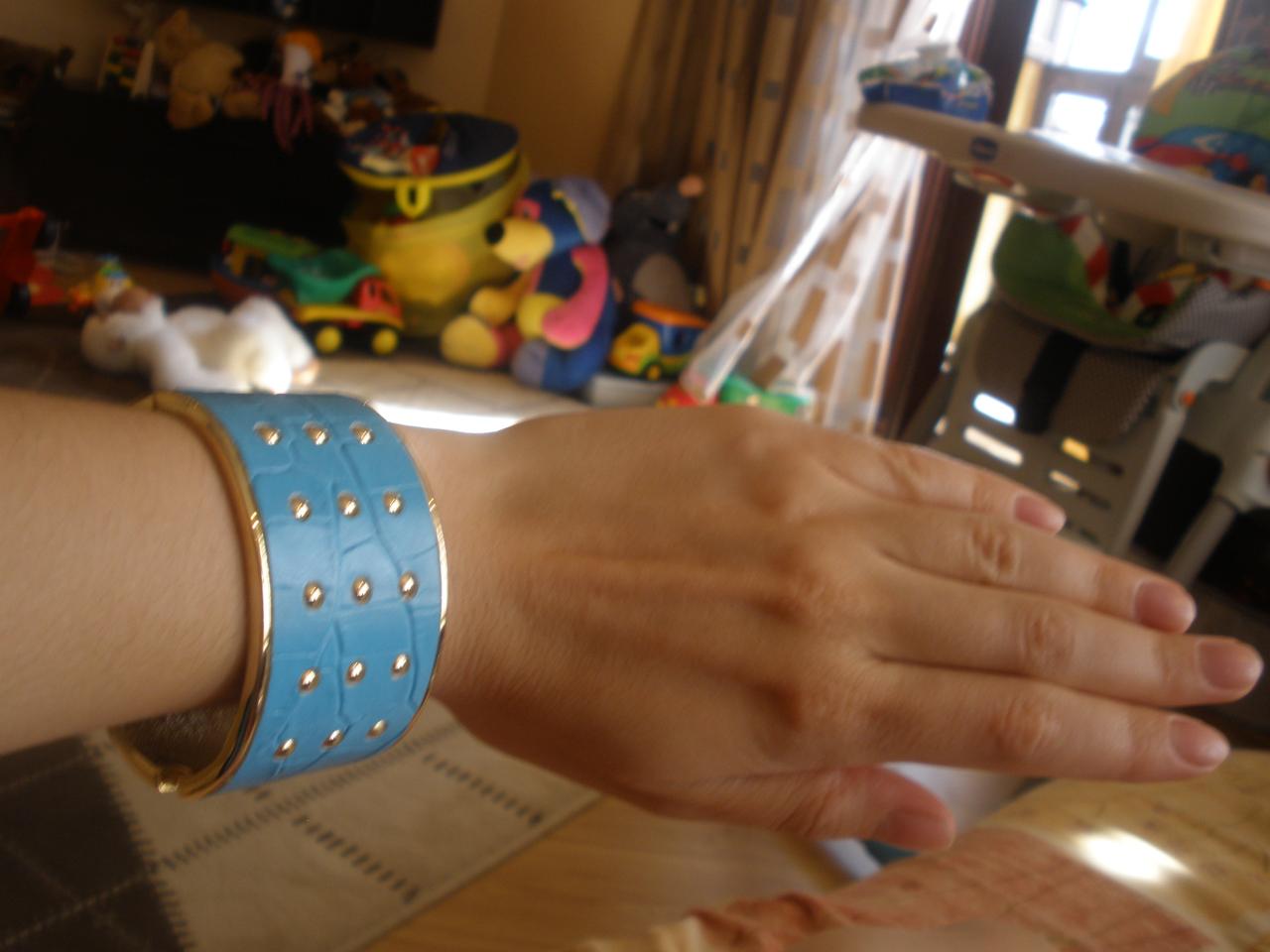 Браслетик бирюзовый. Жёлтый металл, обтянут кожзамом, замок-защёлка, очень стильный. Естественно новый )