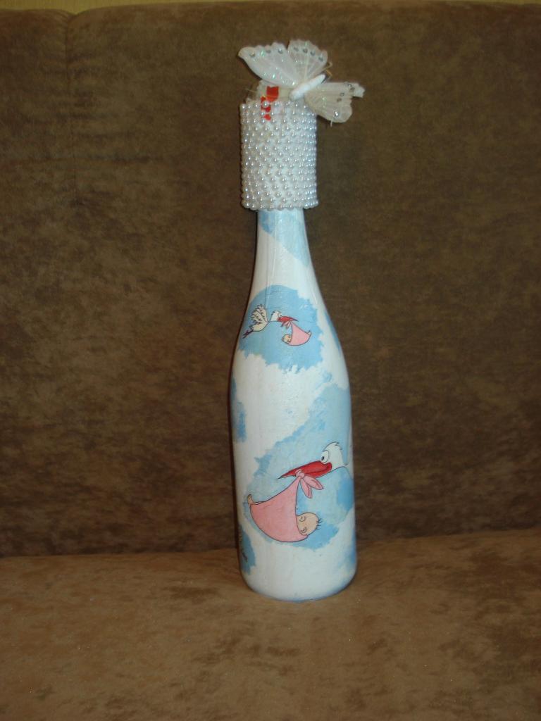 Свадебное шампанское или на рождение ребенка (на подставке с цветами )-150грн