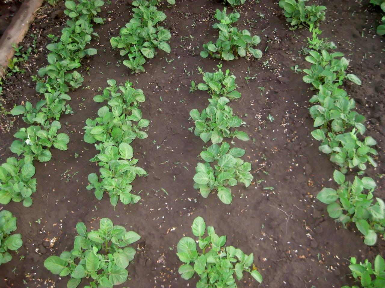 Взошла хорошо.Частично окучила.Мне сказали, что надо засыпать хорошо землей взошедшую картошку. Нужен дождик!!!