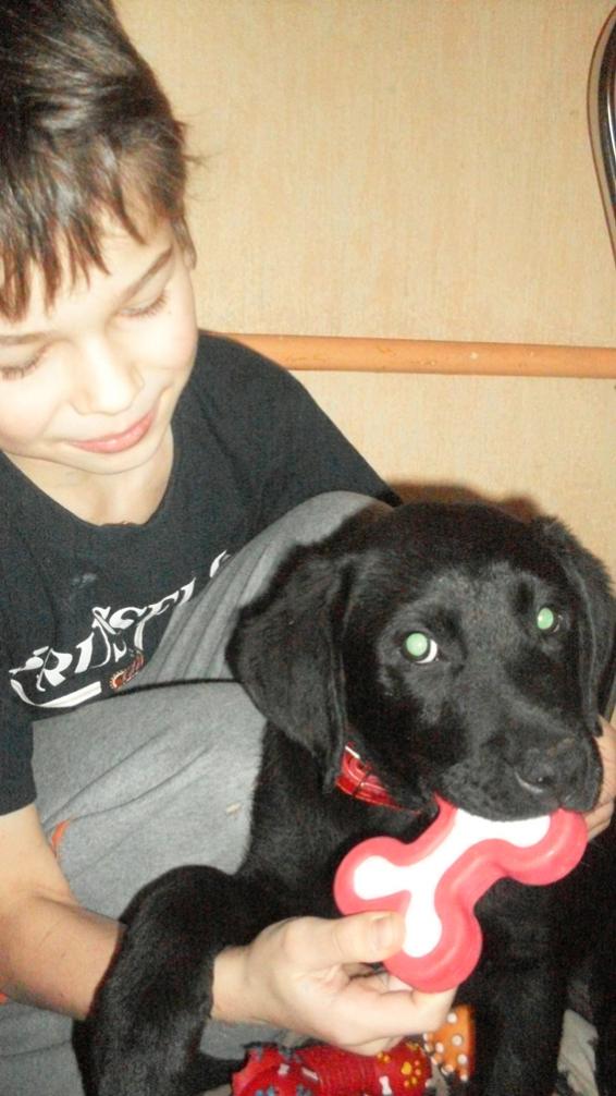 Это жевалка. А нам почти 4 месяца. Зовут Масик. Скоро можем выйти в люди, а пока гуляем во дворе. Ищем компанию и знатоков породы. Собаки раньше были, но других пород, поэтому много вопросов.
