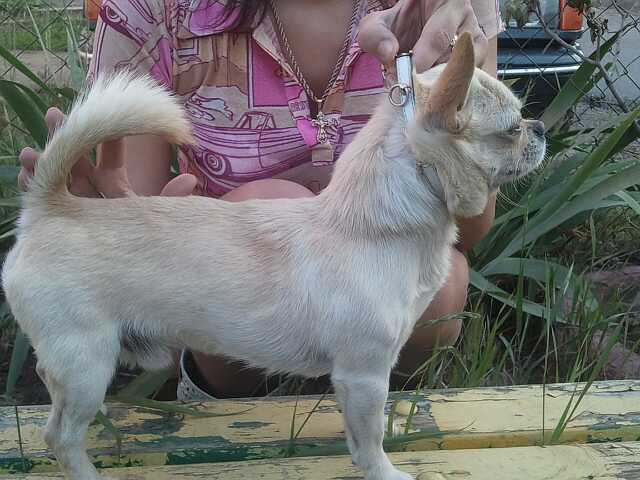 Предлагает свои услуги красивый парень чихуа Diamond (Даня).Окрас палевый ,вес 2,5 кг.Коби.Хорошо сложен.Развязан.Вяжется сам.Даёт мелких,себеподобных деток.Мальчишка с родословной КСУ,оценка "отлично",племсертификат,мед.книжка.Российские крови.(привозной)Участвовал в выставках.Имеются первые места.Цена за вязку кризисная.