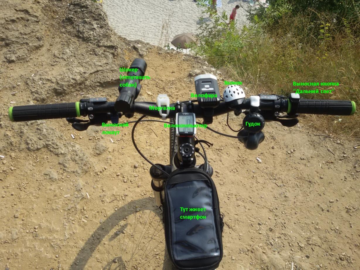 Прибока от истрибителя F16 ))) Мда, я свою считаю загруженной когда там дудка, велокомп, локаут и фара)) Если точно знаю что днем буду ехать и грунтами, то снимаю фару и дудку. Даже при наличии широкого кадэйловского руля, я люблю максимально минималистичное все)