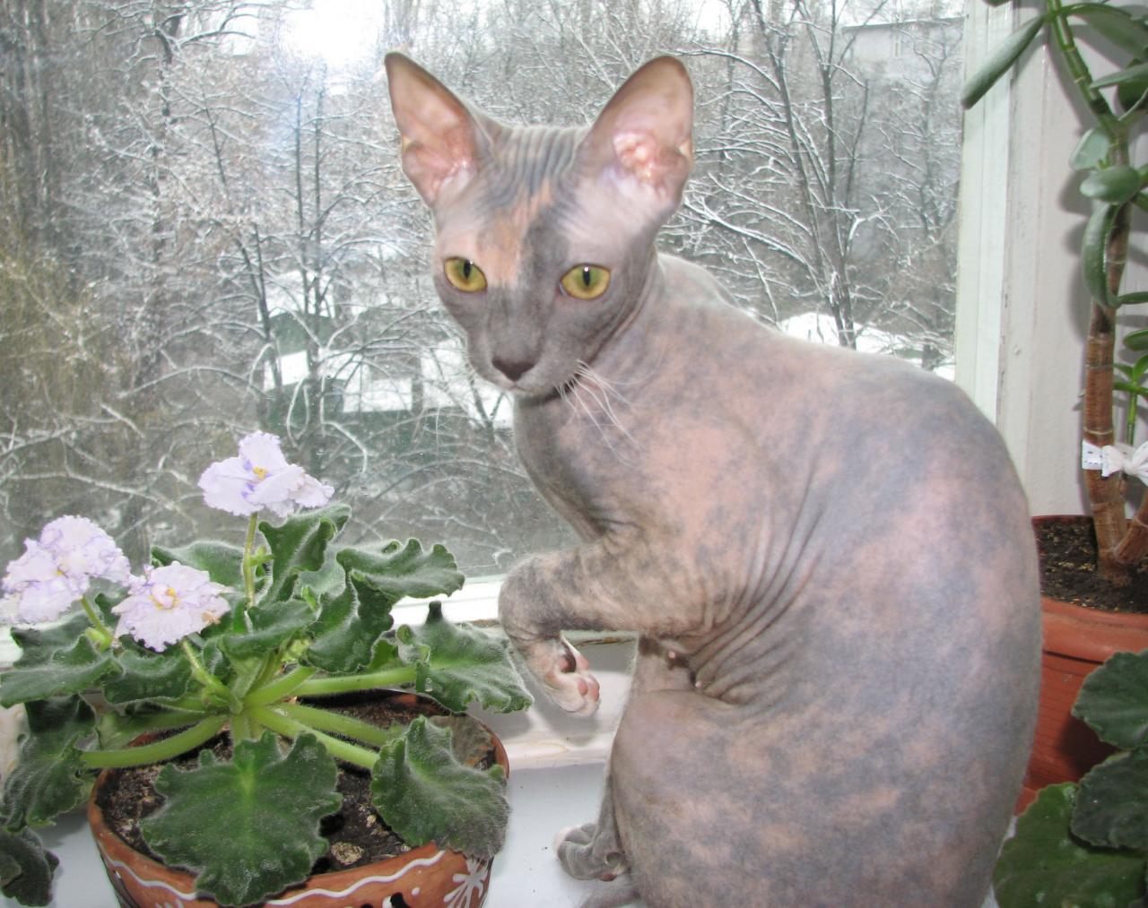 Совсем голый (голорожденный) донской сфинкс - это редкость и стоит соответственно, котята рожденные в тонкой шерсти со временем раздеваются до голости (не буду писать все нюансы....в гугле есть много информации). Наша кошечка в детстве и юности была хорошо в шерсти, причем жесткой и длинной, но редкой. Сейчас после родов совсем голышка, только на мордочке и лапках немного велюрчика.