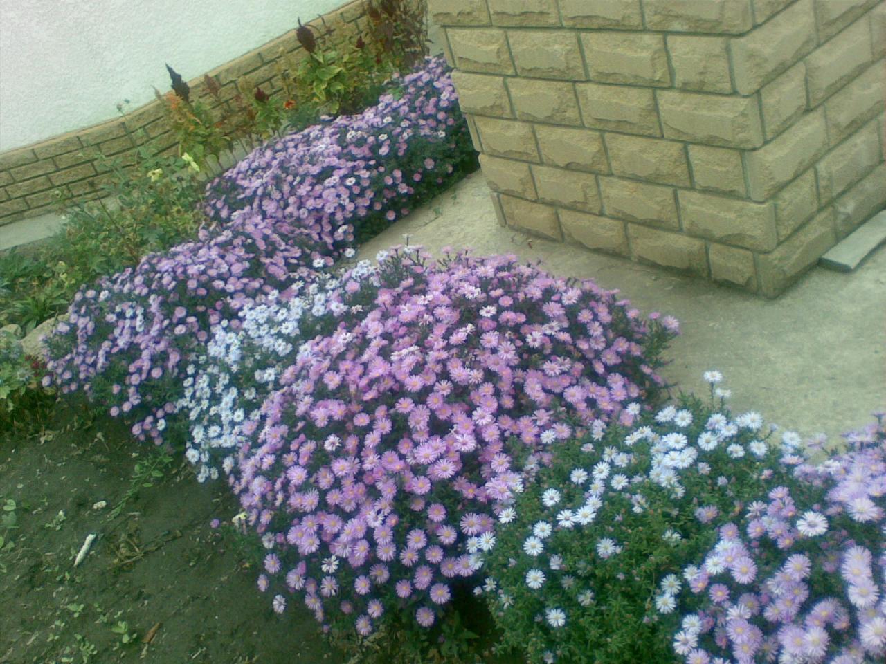 А голубенькие - это эригерон....Мои любимые осенние цветочки...