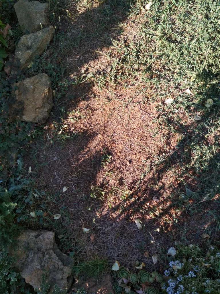 здесь он все лето рос. и так полянка выглядит сейчас. не поливаю. только та влага, которая случайно попадает при поливе роз и гортензии