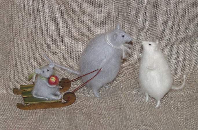 Крыски сваляны из шерсти, автор - москвичка Наталья Кузнецова