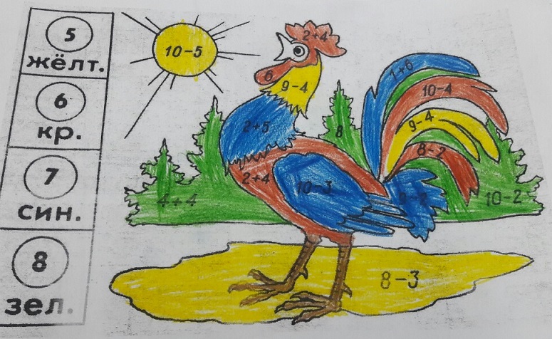 От себя учительница даёт иногда задания после уроков, уроки проходят по плану программы. Вот такие у нас математические раскраски бывают: