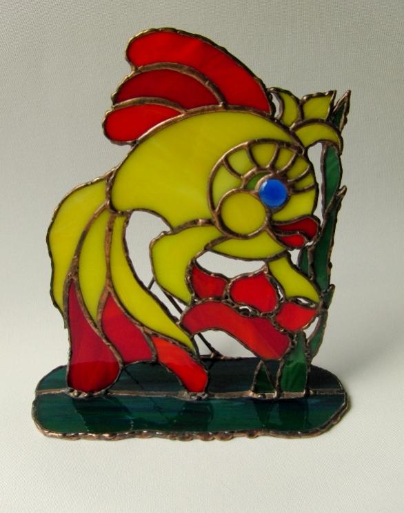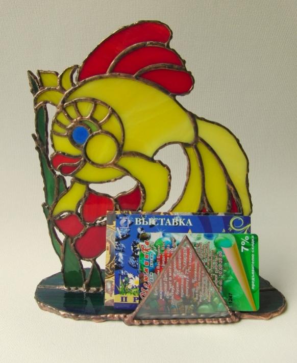 В изделии использованы 6 фактур витражного стекла разного цвета и степени прозрачности.
