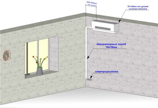 Я не практик. Я могу вам дать телефон Киевклимата, а у них вы можете получить телефон ближайшего к вам представителя.А у нее будет такая же проблема с установкой. Угол стена лоджии и «короткая « несущая стена. Если установят на расстоянии 10см от стены лоджии, тогда внешний блок будет на 5см больше в окне кухни торчать.