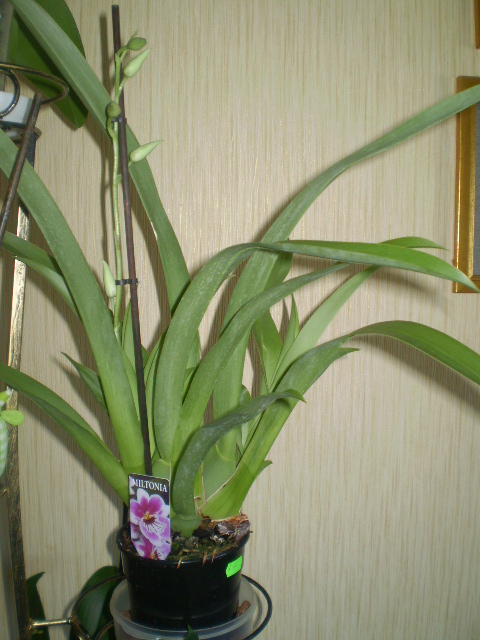 Цены очень приятные, фаленопсисы с одним цветоносом - 70 грн, с тремя - 125грн! Пока гуляла между стелажами, рассматривая ассортимент, наткнулась на стелаж с распродажей, на котором меня ждала красавица Мильтония, в отличном состоянии, с цветоносом, всего за 50 грн!