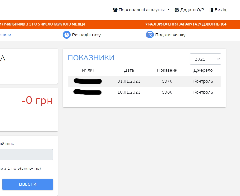 И когда создавала в Нафтогазе личный кабинет, так и пришлось все 3 л/с записать на свою фамилию. Иначе не получалось добавить лицевой счет.