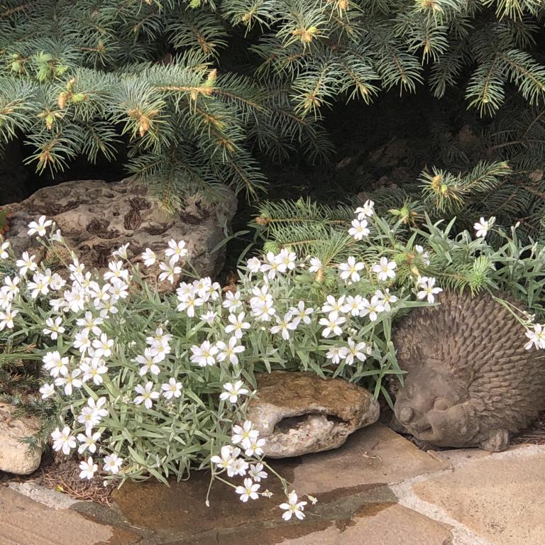 Марина, выбросила все очитки и заменила флоксом шиловидным. Прелесть как на мой взгляд! Они не так сильно расползаются и вечнозелёные листья. Сортов сейчас очень много. У меня 5, хотела иметь около 10. Если умеешь растить лаванду, то тут то же самое - отцветут, берёшь ножницы и обрезаешь как нравится, но лучше чуть короче. Я хочу под самим кустом подсыпать опилки, чтобы не укоренялись лишние ветки. У меня они будут заполнять дорожку между плитами. Мне нравится, только пока много пустых мест, а купить уже негде новые сорта, прозевала как-то, понадеялась на частника. Кстати, на фото видна мульча от шредера, я в восторге. Убрали из под туй гранитную гальку - вся в мусоре от стрижки туй, как не стараюсь, но попадает. Плюс соседский мусор от опавшей листвы заносит. Перебирать же не будешь каждый год. Вот заменили мульчёй, а гальку пустим на другую идею. Для красивой мульчи нужно брать ветки от 1 до 3 см и сыпать уже сверху, мелкая идет на основную толщину слоя мульчи. Опять перекопали, перетащили, опять бардак!