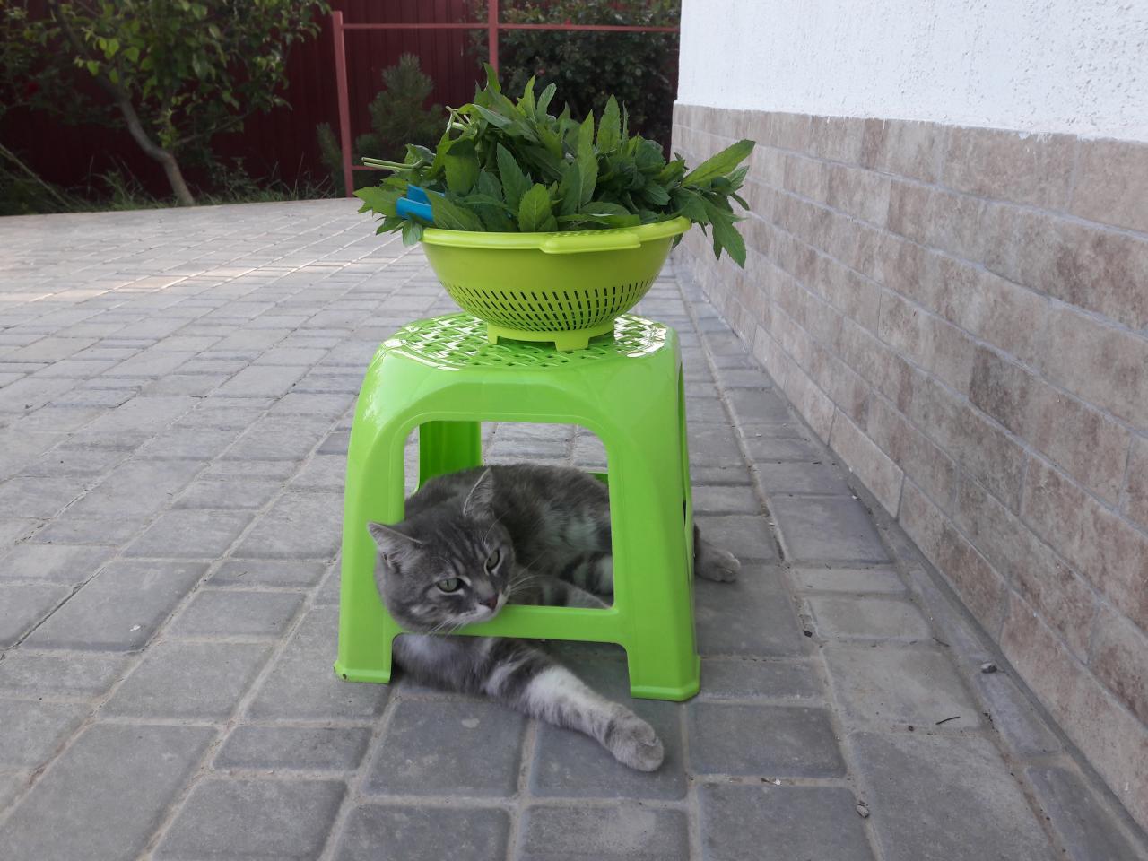 Котя помогал мне стричь мяту и утомился ))) Нажмите на изображение для увеличения