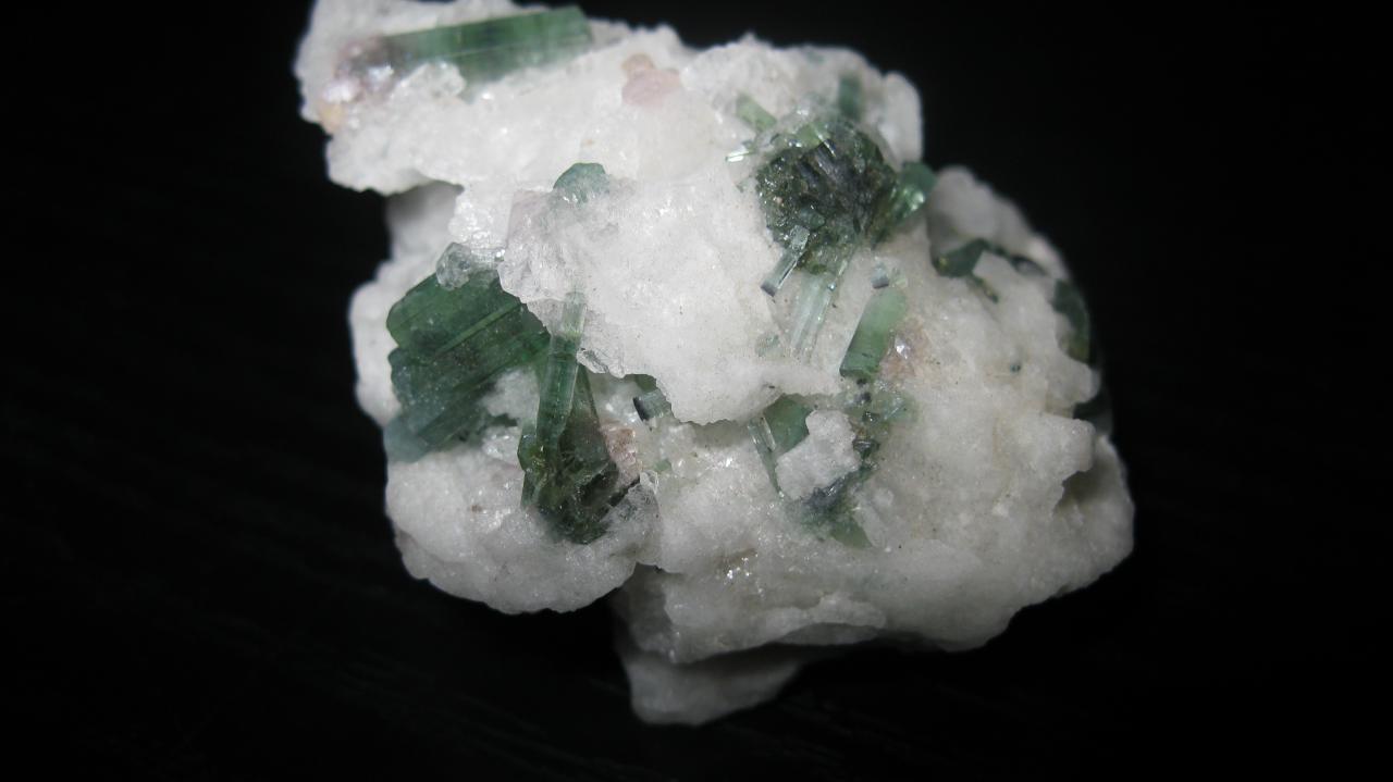 Аквамарин, берилл, цаворит, рубин, турмалины в породе (мелкие), кунциты: