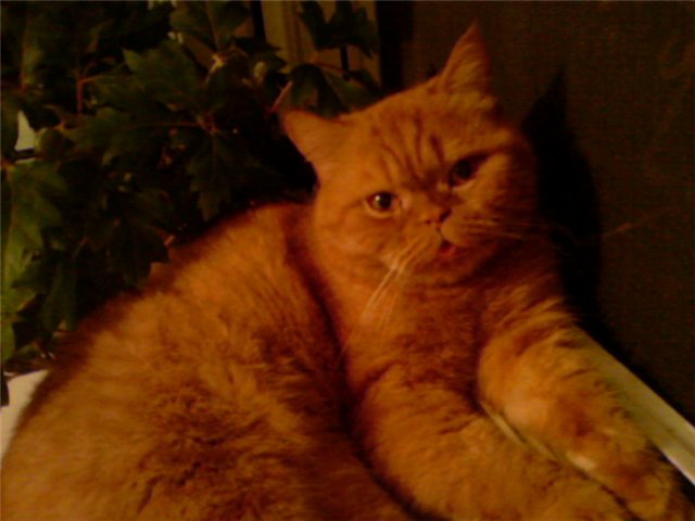 Уже совсем освоился дома, начинает шкодить понемножку (повадился растаскивать землю из горшка с драценой). А вообще он очень контактный какой-то, все время с людьми старается быть, то телевизор смотрит со всеми вместе, то возле компьютера сидит, прямо не котенок, а собачка, особенно если учесть, что изначально он был довольно диковатым.