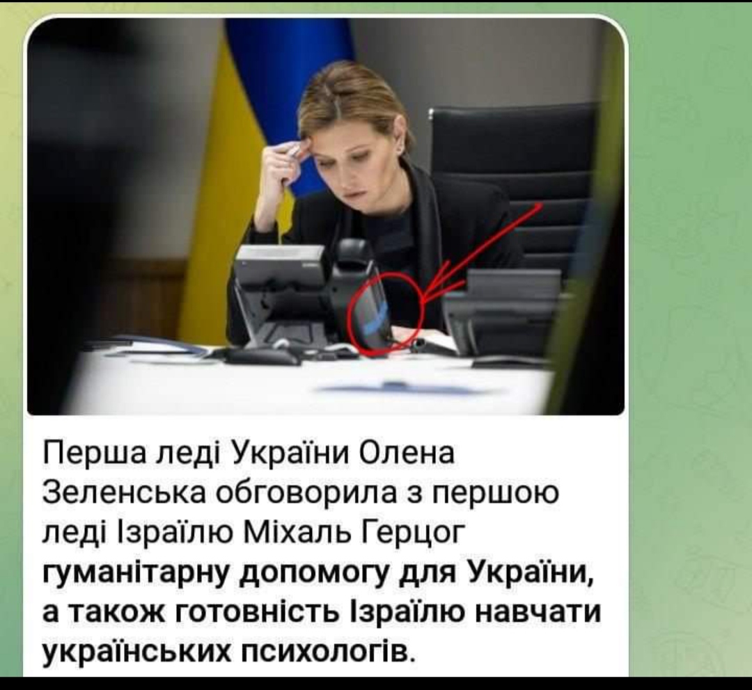 Але клята "чайна ложечка"... Ви пригадуєте старий анекдот про радянського шпигуна та чайну ложечку? Якщо розмова все ж відбулася (бо ж не можна збрехати про розмову з першою леді Ізраїлю, якби її не було. Чи в нас усе можна?), то навіщо потім робити фальшиві фотосесії, для чого вся ця фальш? А щодо "чайної ложечки", то тут її роль виконав траспортувальний скотч. Він особливий - добре утримує елементи товару, але відірвавши, назад його не приклеїш. Цією оргтехнікою, за якою спілкується наша лєді, ще не користувалися, її щойно спеціально для фото витягнули з упаковки.
