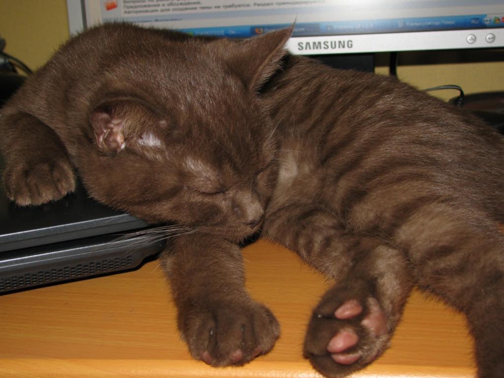 а ситуация знакомая.. наша ещё помещается на клавиатуре и укладывается на неё полностью, стоит сесть за комп...