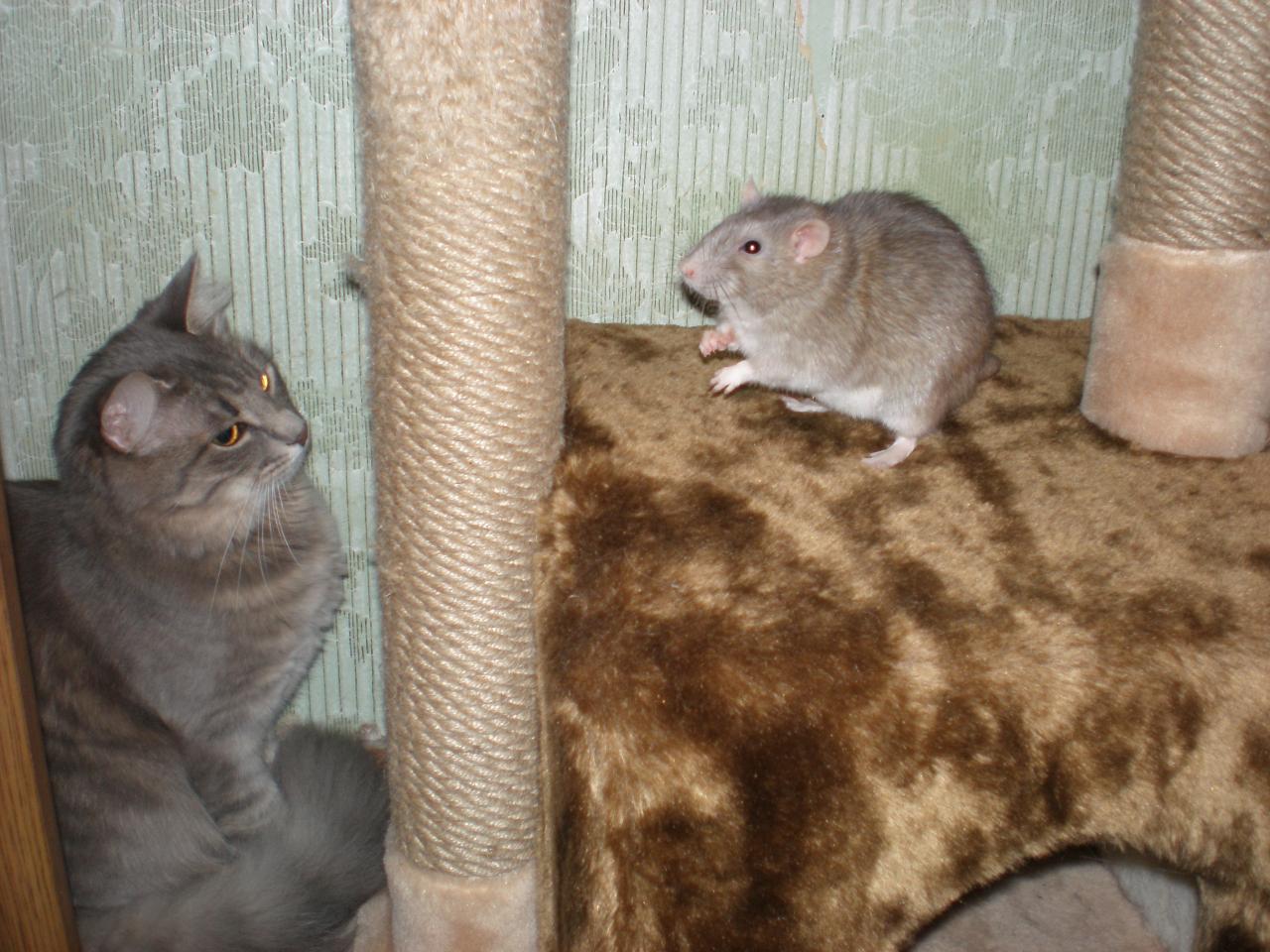Классные мордочки!!Кошка+крыска=бомба!Они ,как друг к другу относятся?