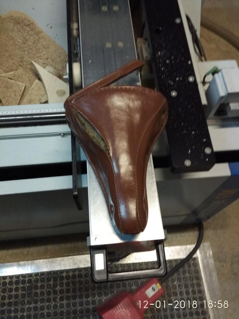, отшлифовать по форме старого седла, купить чепрачную кожу, замочить её и натянуть на данную приспособу, а затем на данную рамку.