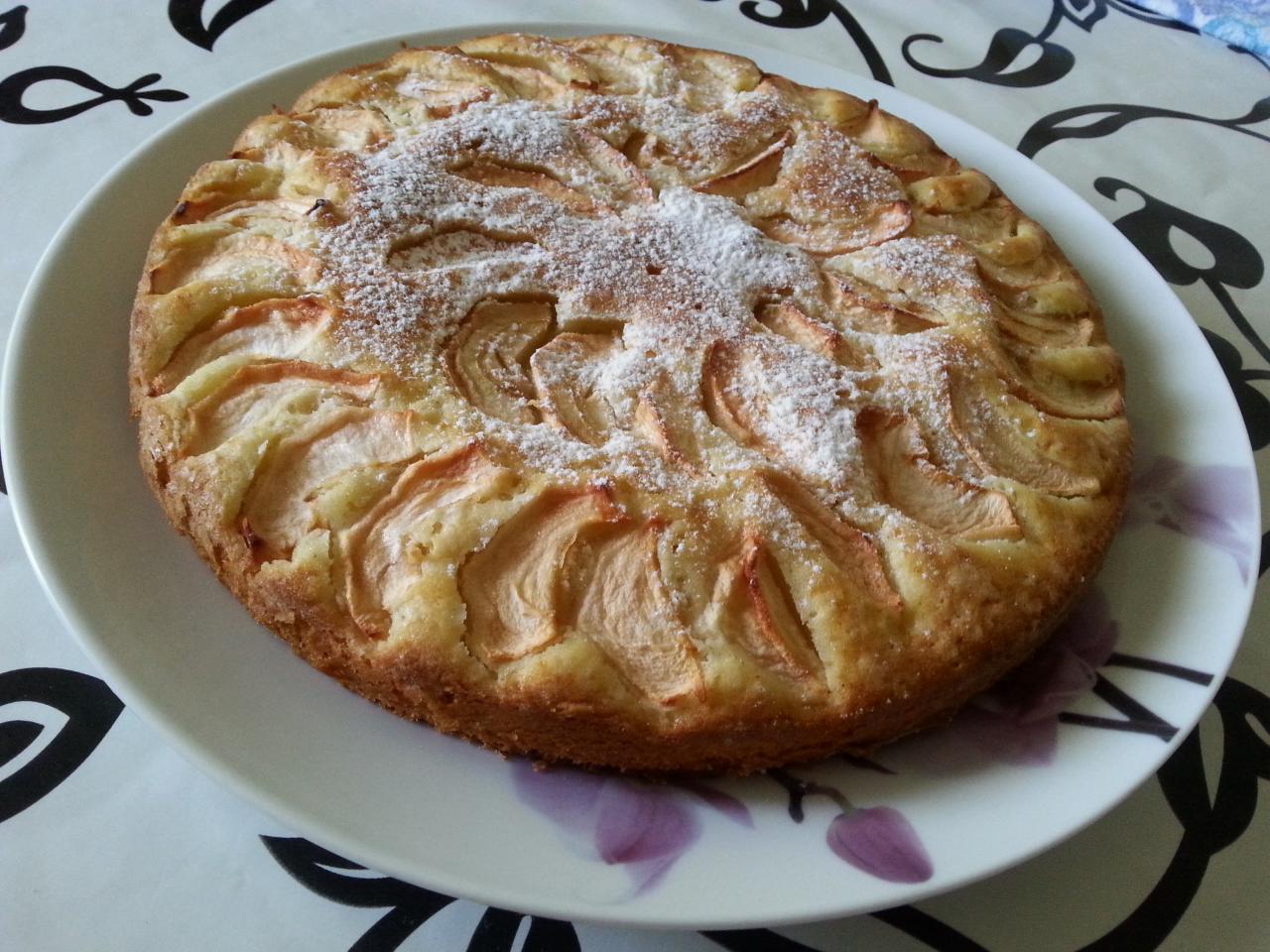 Выливаем тесто в форму, сверху укладываем слайсы яблок любым образом. Многие могут спросить, не стоит ли добавить что-то в само тесто (яблоки, ягоды). Я бы не стал. Текстура пирога такая, что ты хочешь наслаждаться её плотностью и рассыпчатостью и не хочешь, чтоб что-то мешало тебе.